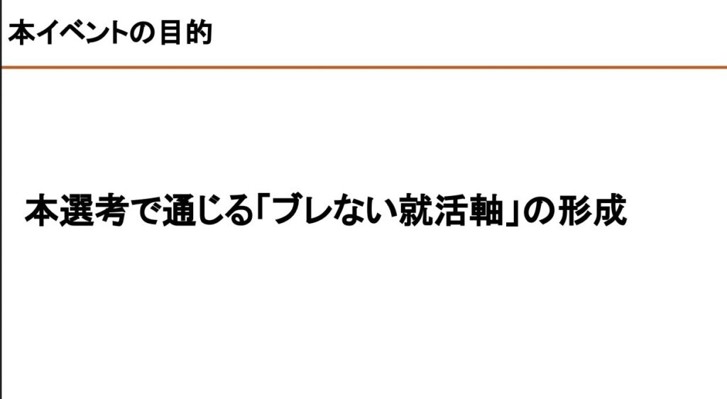 今回は、23卒の就活生に本選考で通じる「ブレない就活軸」の形成を目的としたイベントを開催しました。