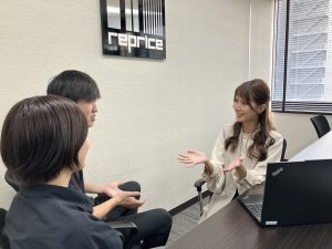 でも、リプライスの面談はまったく違いました。仕事の話だけでなく、「渡邉さんはどういう人になりたいの?」「何を大事にしてるの?」と、たった一人の学生に対して真正面から向き合ってくれたのが印象的でした。社員一人ひとりが「自分たちで会社を良くしていく、変えていく」という意識を持っていて、仕事の話もとても活き活きとしていました。学生団体での経験と重なったこともあり、「この人たちと一緒に働きたい」と思えたのが、リプライスを選んだ最大の理由です。